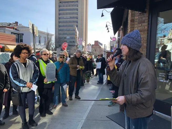 “This is a climate emergency, and we are all here to take action and we ask you to take action too. One thing you can do is divest from banks like Chase and move your money to banks like Washington Trust that do not support fossil fuel investment,” said activist Jen Long.