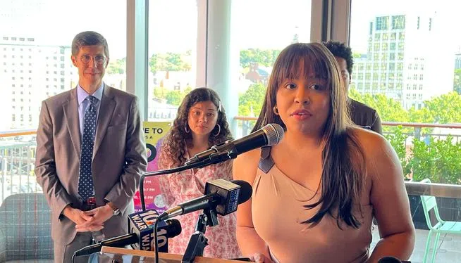 An announcement intended to “build excitement” for the event was held Thursday inside the Aloft Hotel across the street from the park, and began with a musical performance by Providence singer Shawnee “EhShawnee” Taveras.