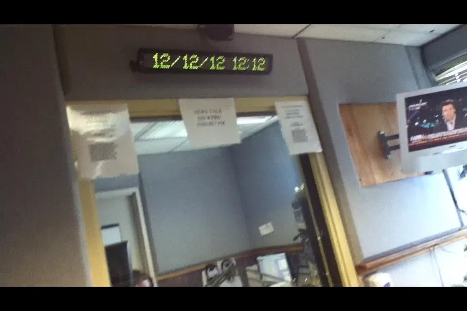 A view of the on-air studio clock on 12/12/12 @ 12:12 PM