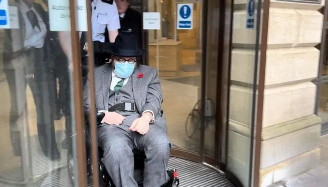 Nicholas Alahverdian is wheeled out of a court in Scotland as he unsuccessfully fought extradition to the United States in a series of hearings in 2023. Photo by Jane MacSorley of the “I Am Not ...