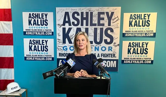 Republican candidate for Rhode Island Governor Ashley Kalus in a news conference at her Warwick campaign headquarters October 13, 2022. Photo by Steve Klamkin WPRO News By Steve Klamkin WPRO NewsRepub...