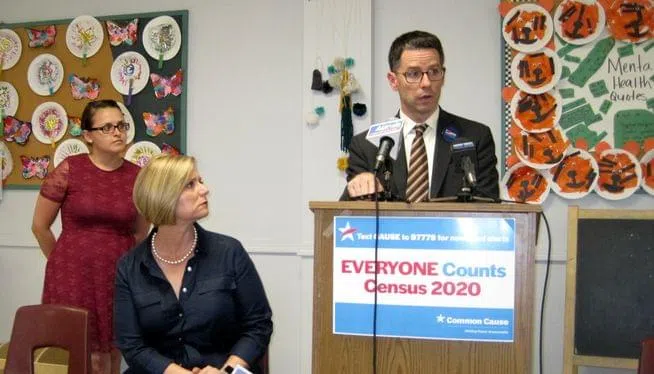 Members of the Rhode Island Complete Count Committee (from left, Marcela Betancur, Cortney Nicolato and John Marion reacted In 2019 to a U.S. Supreme Court decision putting on hold, a Trump administra...