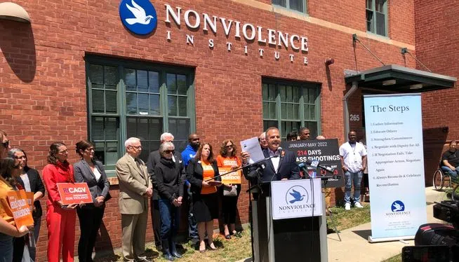 Rhode Island Congressman David Cicilline speaks at a Gun Violence Awareness Day event at the Nonviolence Institute in Providence June 3, 2022. Photo by Steve Klamkin WPRO News By Steve Klamkin WPRO Ne...